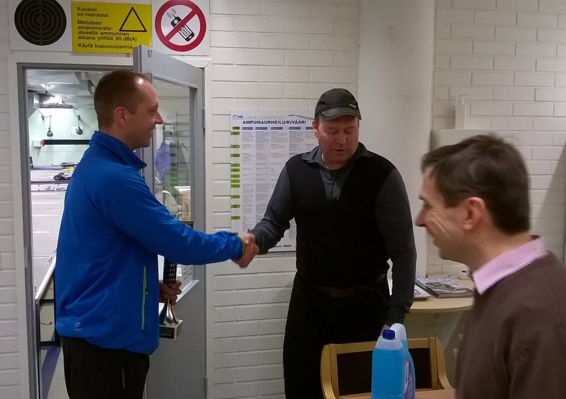 Turun Seudun Ampujien ja Säkylän Seudun Ampujien välinen seuraottelu 50m kiväärilajissa käytiin 26.4.2015 Kupittaan urheiluhallin sisäampumaradalla. Tämänkertaisen seuraottelun voitti niukasti Säkylä. Lopputulosten selvittyä saimme todeta, että eroa oli "vain" kaksi pistettä. Ottelussa suoritettavat lajit ovat olleet 60 ls makuu ja 3x40 ls, mutta TSA:lla ei ollut tällä kertaa asettaa "asentoampujia" linjalle, joten sovittiin, että suoritetaan kaksi kertaa 60 ls:n makuukisa. Kaksikymmenvuotissynttärin johdosta sovittiin, että kesän aikana pidetään juhlaottelu ja kilpailun jälkeen muistellaan paria vuosikymmentä pienen juhlan merkeissä. Seuraottelun tulokset saat esille tästä! |
